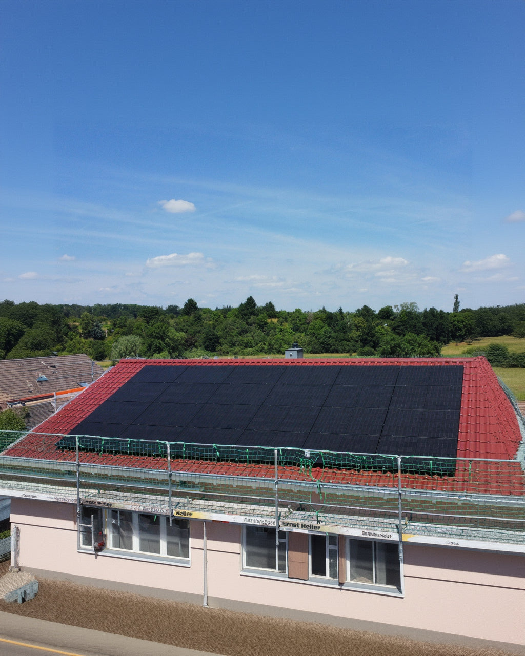 Cleanly executed installation work including the installation of photovoltaic modules on a new roof. This includes a bird protection system around the entire installation, which provides reliable technical protection and blends harmoniously and unobtrusively into the overall appearance.