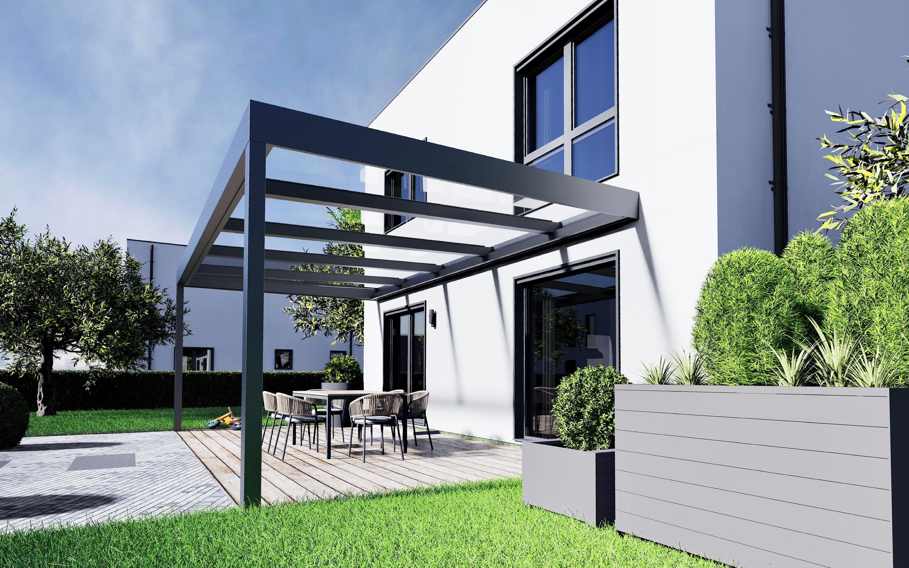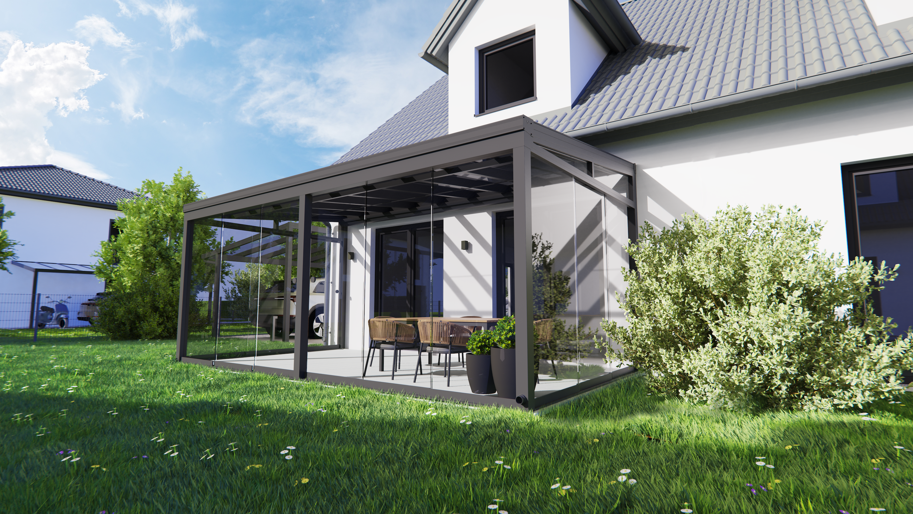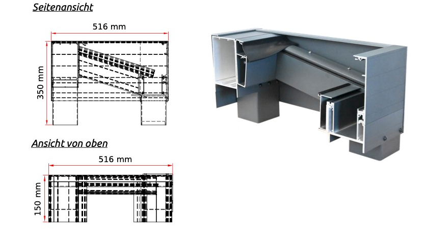 Maximale Transparenz. Die Sky View Serie bietet eine optimierte Geometrie für ein offenes Raumgefühl ohne Kompromisse bei der Statik.*Systemhöhe:350 mm*Breite oben:516 mm*Profiltiefe:150 mm