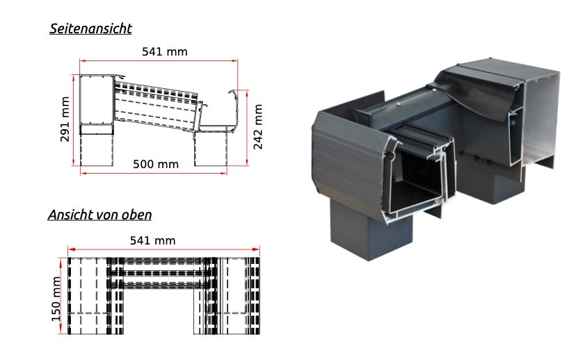 Präzision im Detail Erfahren Sie mehr über den inneren Aufbau unseres TDS-Systems.Diese Konstruktion vereint Stabilität mit funktionalem Design.*Höhe des Profils:291 mm*Gesamtausladung:541 mm*Montagebasis:500 mm